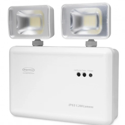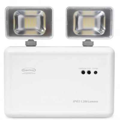A Iluminação de Emergência LED Autônoma 1200 Lúmens IP65 da Segurimax foi desenvolvida para iluminar até 250 m² em períodos de falta de luz.