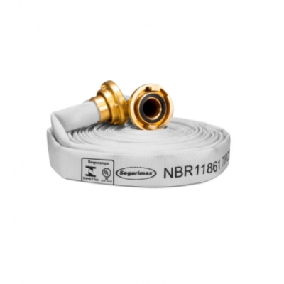 Possui revestimento têxtil 100% poliéster, tubo interno em borracha sintética e uniões Storz fabricadas em latão.